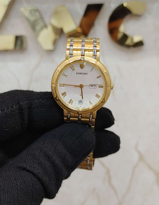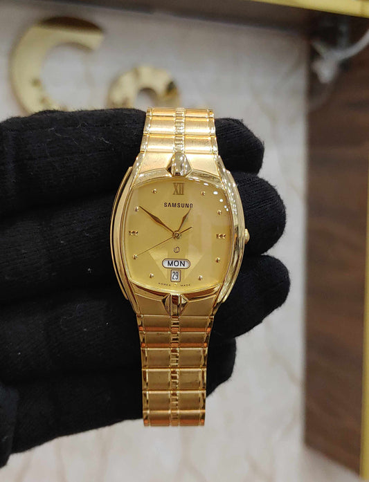 Samsung Vintage Golden Classic Wrist Watch Stainless Steel 38mm Quartz