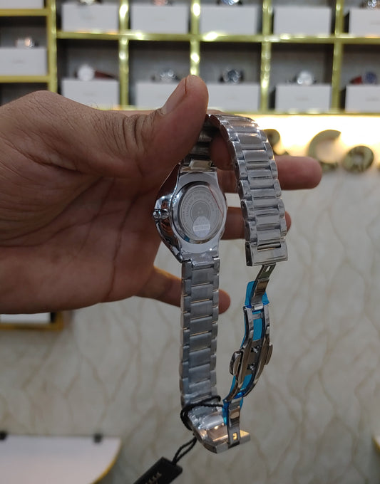 Fitron Day Date Wrist Watch For Men Stainless Steel