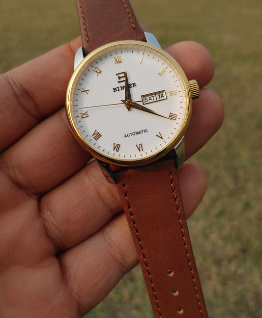 Binger Automatic Light Brown Leather Strap Watch For Men