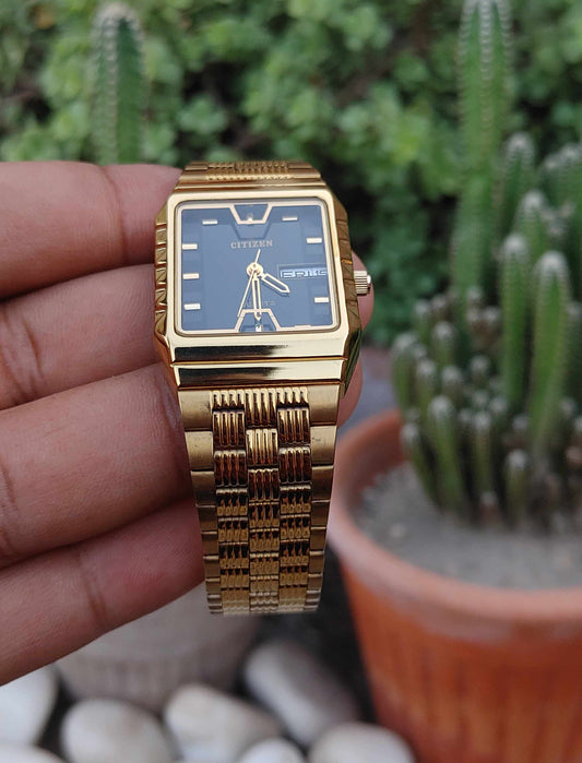 Omax Rare Vintage Tank Shape Watch For Men Gold Plated