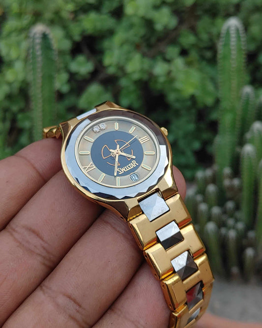 Swistar 23 Kerat Gold Plated Sapphire Coated Wrist Watch Vintage