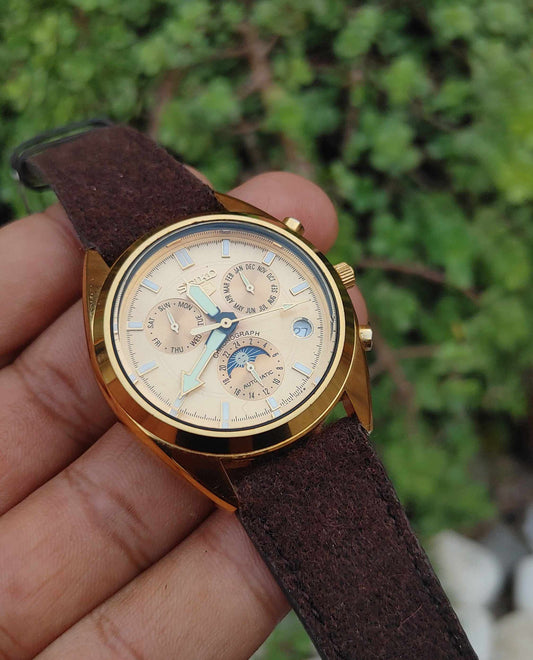 Seiko Vintage leather Strap 40mm Moonphase