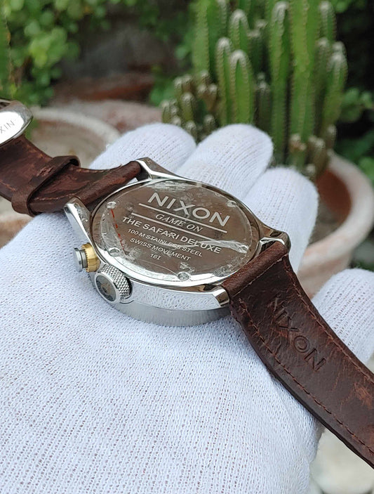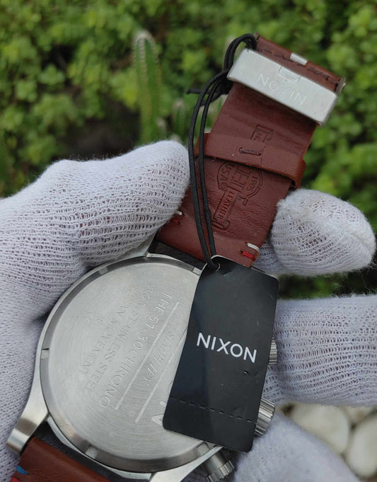 Nixon Leather Strap Wrist Watch For Men Brown Retro Strap
