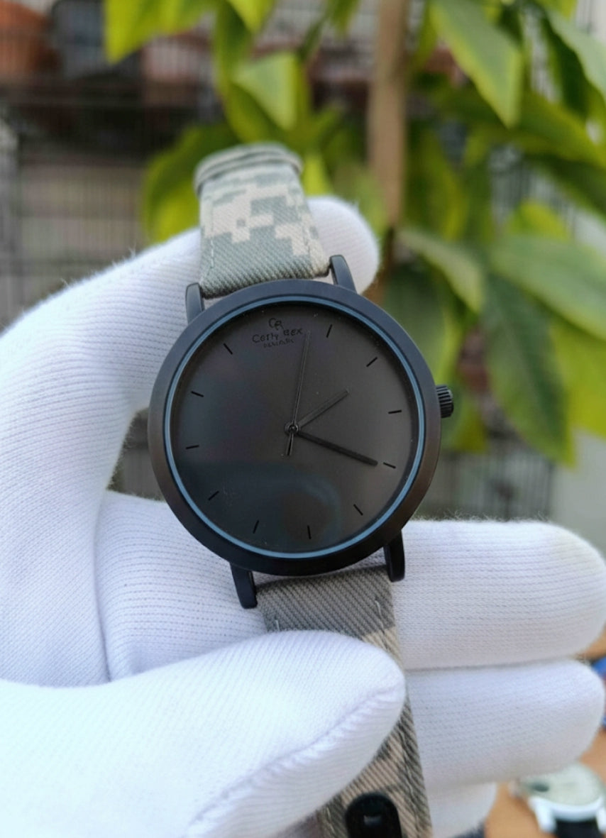 Carley Rex Men's Watch Black Case Stainless Steel with Camouflage Strap | Stylish Analog Wrist Watch