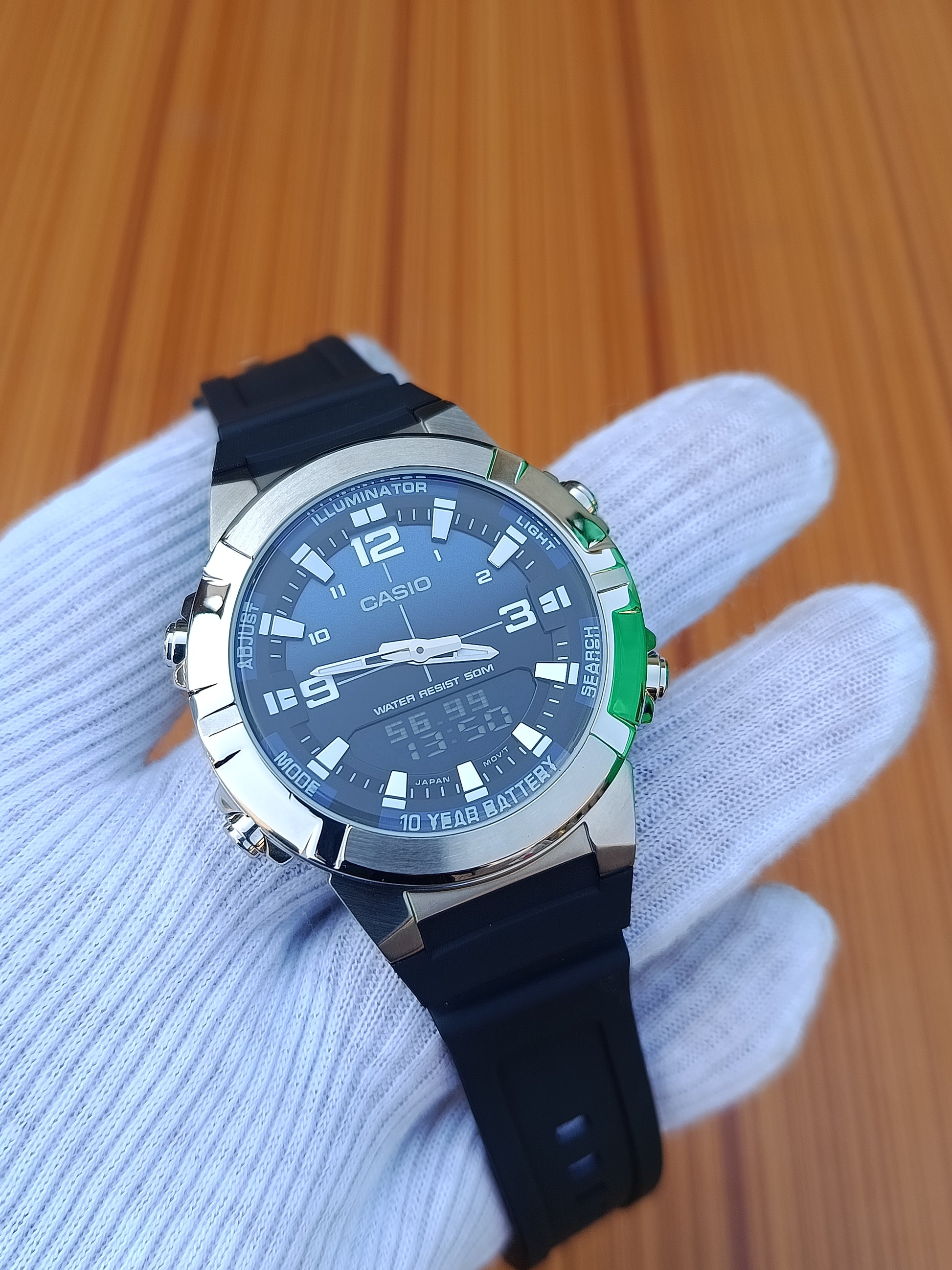 Casio AMW-870A-2AVDF Men’s Stainless Steel Watch | Dual Time | 100M Water Resistant