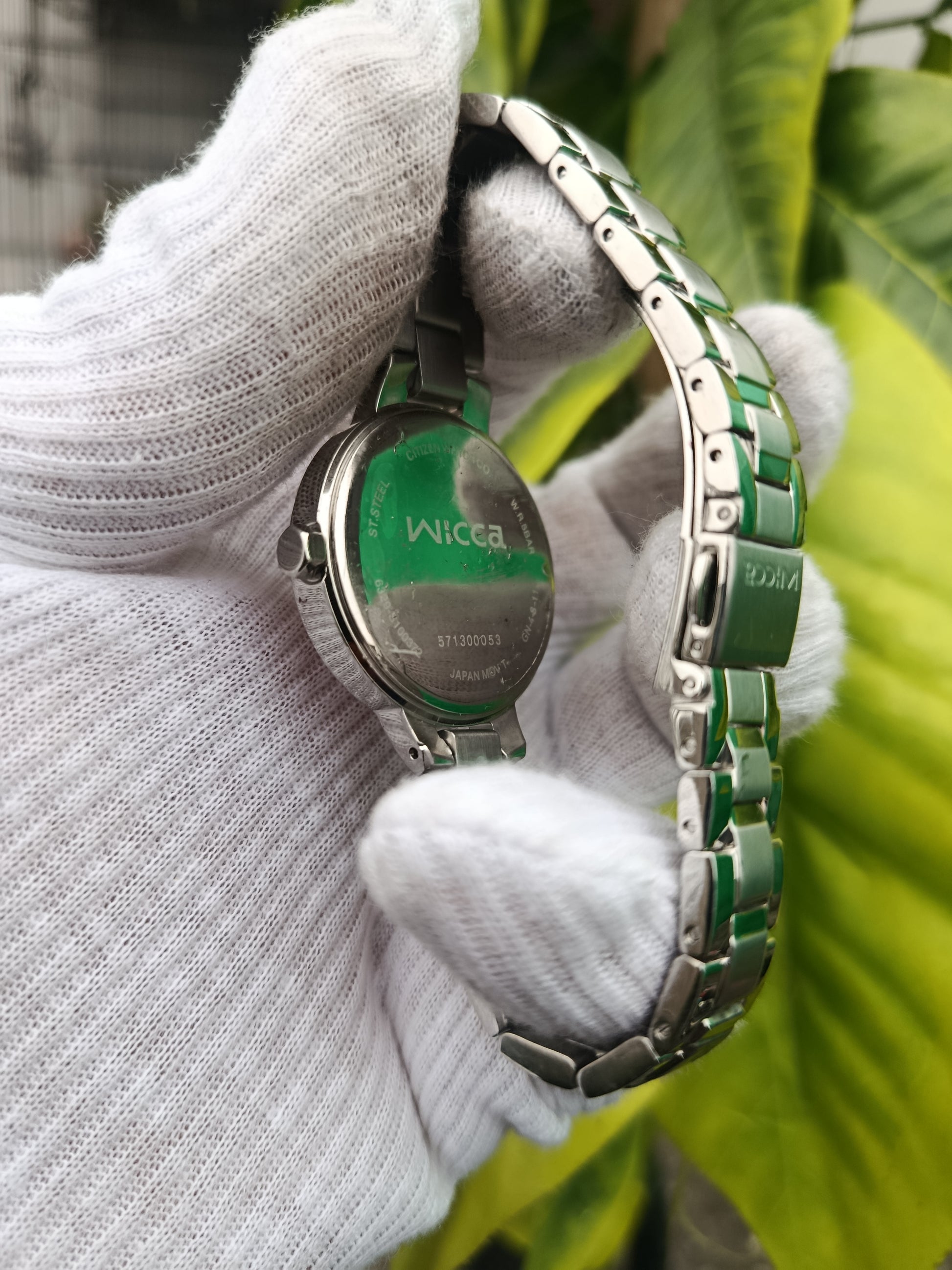 This Citizen Wicca ladies watch features a soft pink dial paired with a stainless steel bracelet, creating a graceful and feminine look. Designed for everyday elegance, it blends reliable performance with refined Japanese styling.