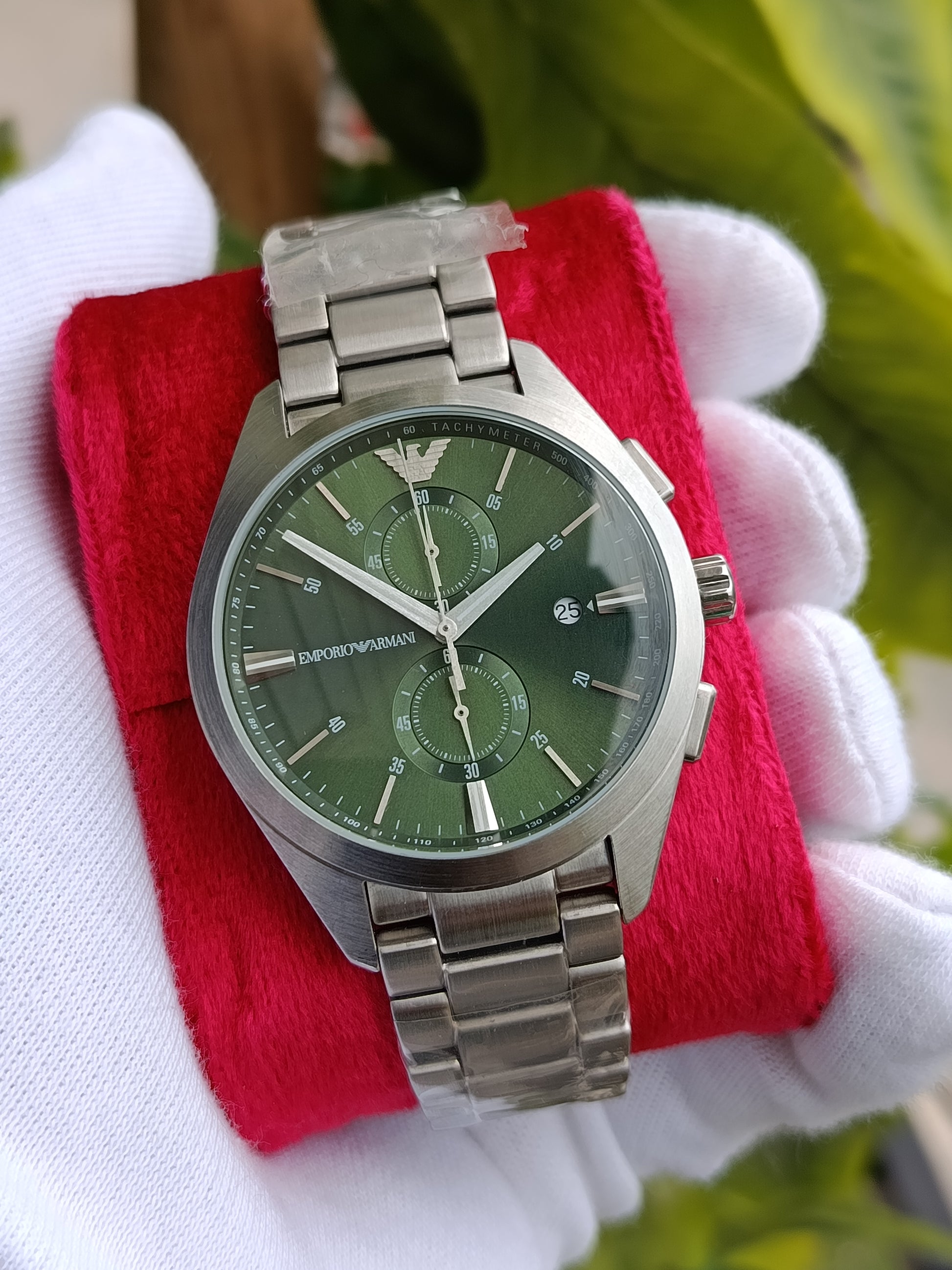 Emporio Armani AR11541 Men’s Chronograph Watch – Green Hulk Dial with Stainless Steel Bracelet