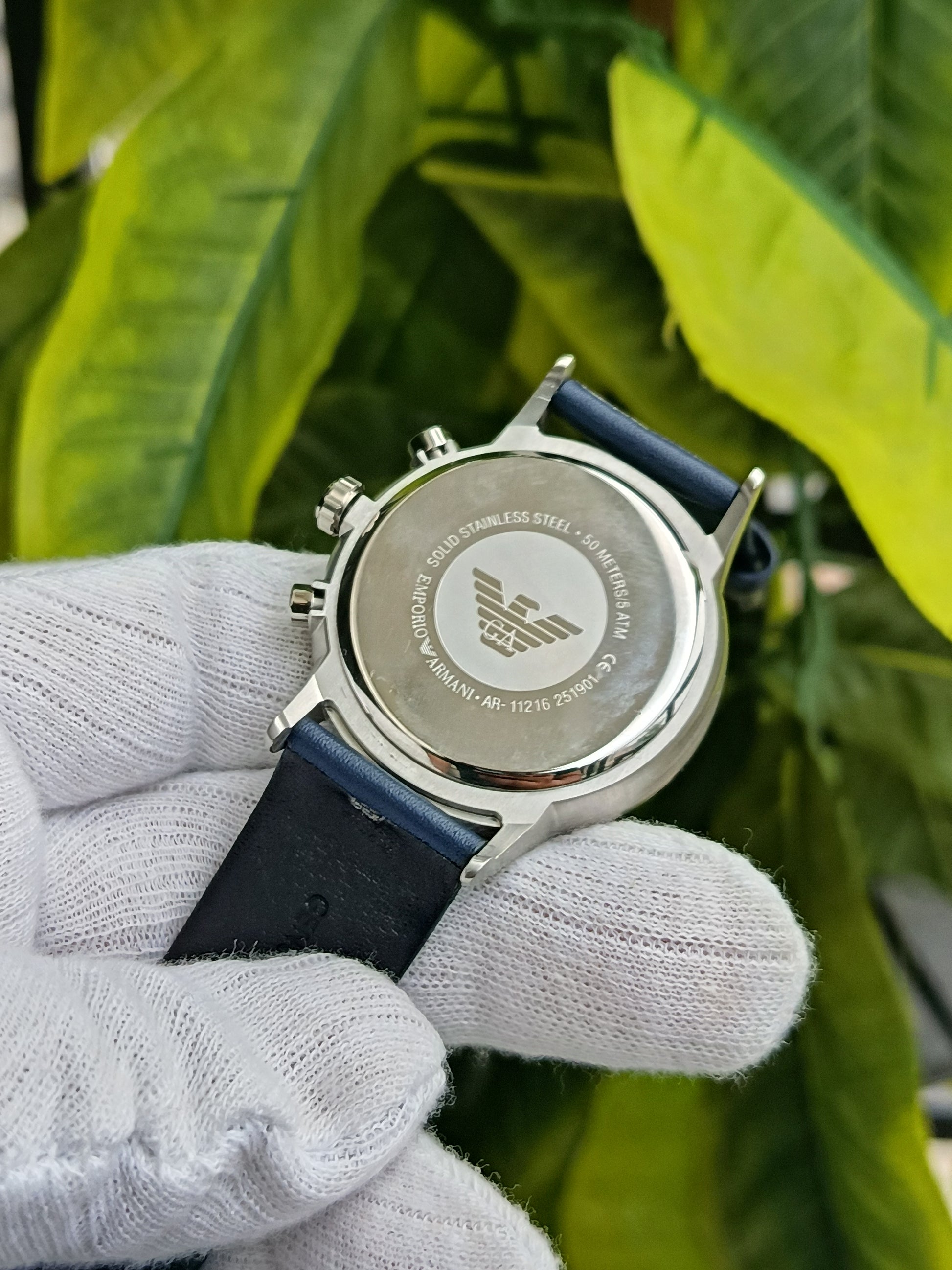 Emporio Armani Renato Blue Dial Chronograph Watch with Blue Leather Strap for Men - AR11216