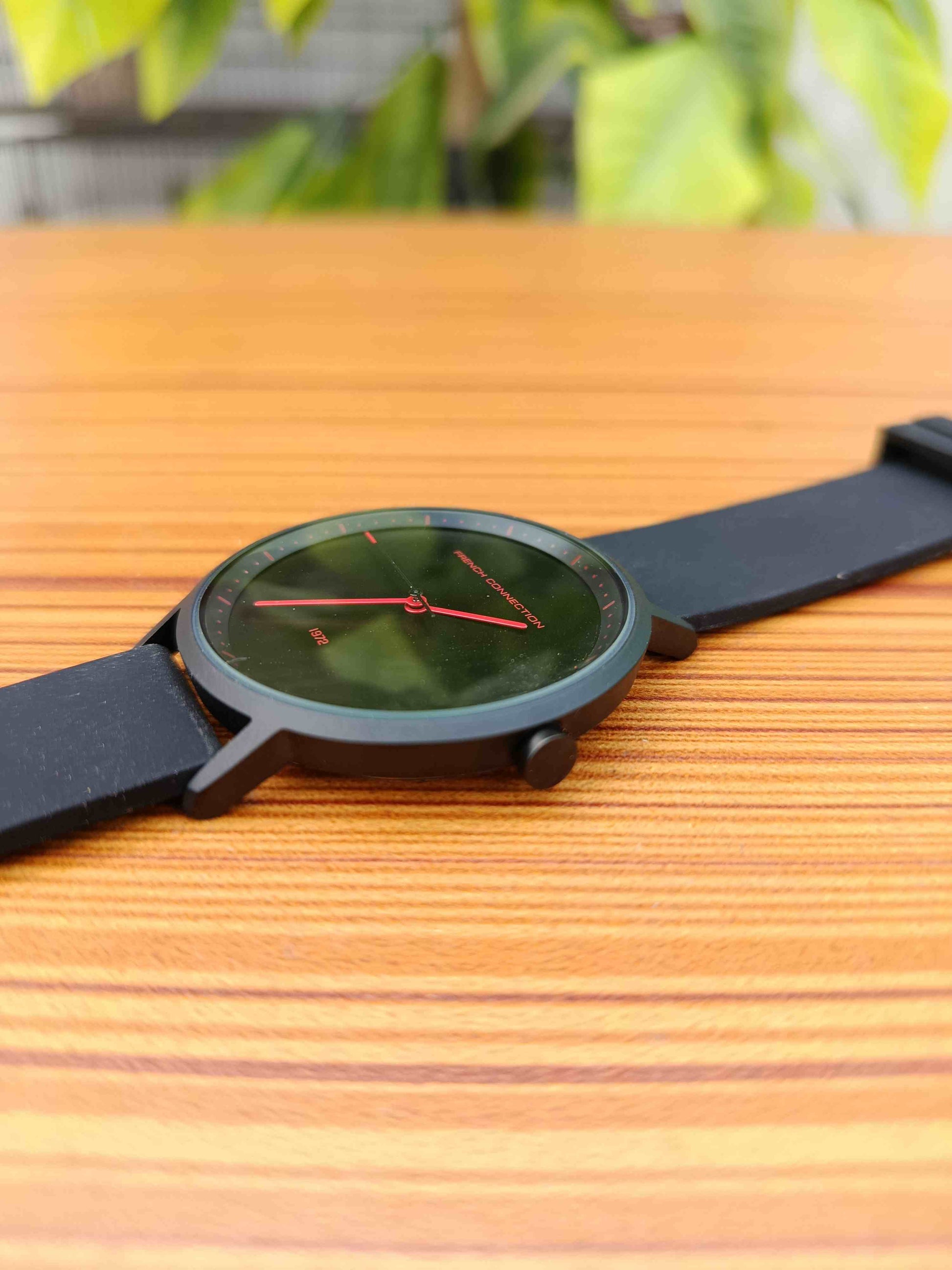 French Connection Men’s Matte Black Minimalist Watch – Red Accents & Silicone Strap (FCN001 Series)