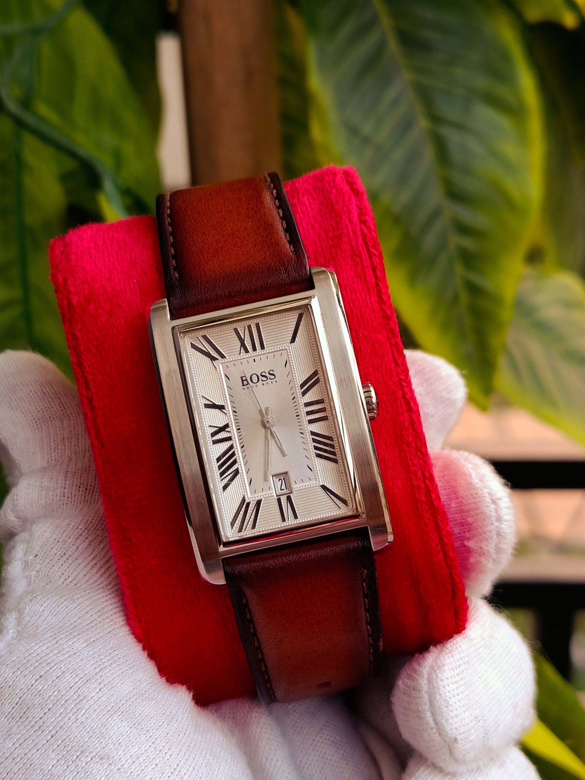Hugo Boss Roman Number Dial Men's Watch Brown leather Strap