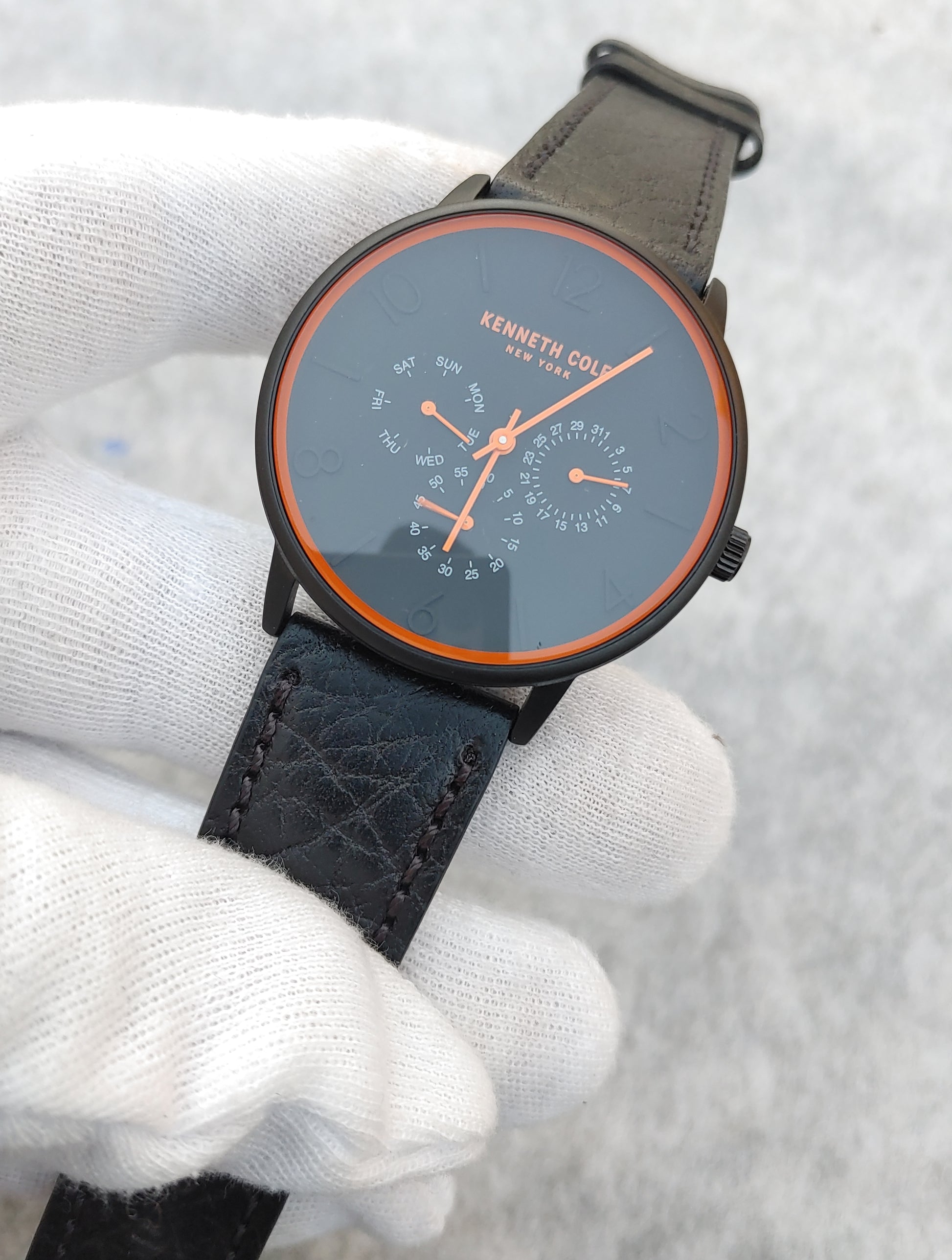 Kenneth Cole Men's Black Watch KC51039006 – 42mm Quartz Leather Strap