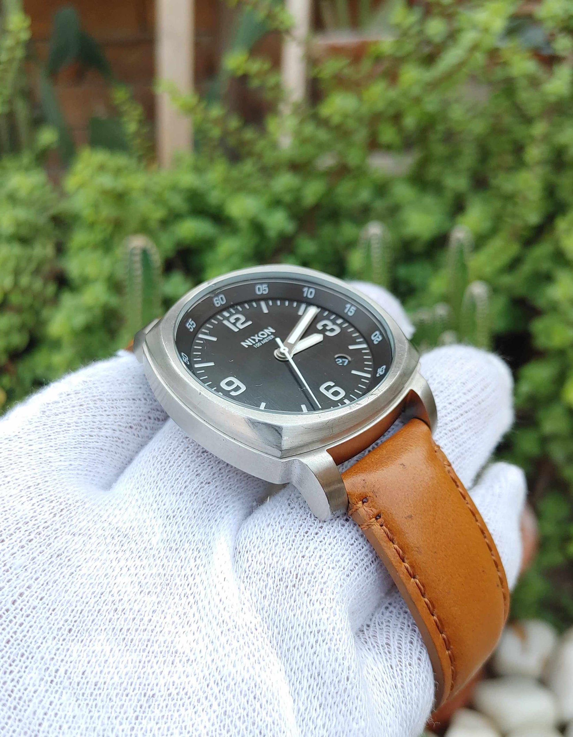 • Nixon Brown Leather Strap Casual Watch For Men Swiss Case.