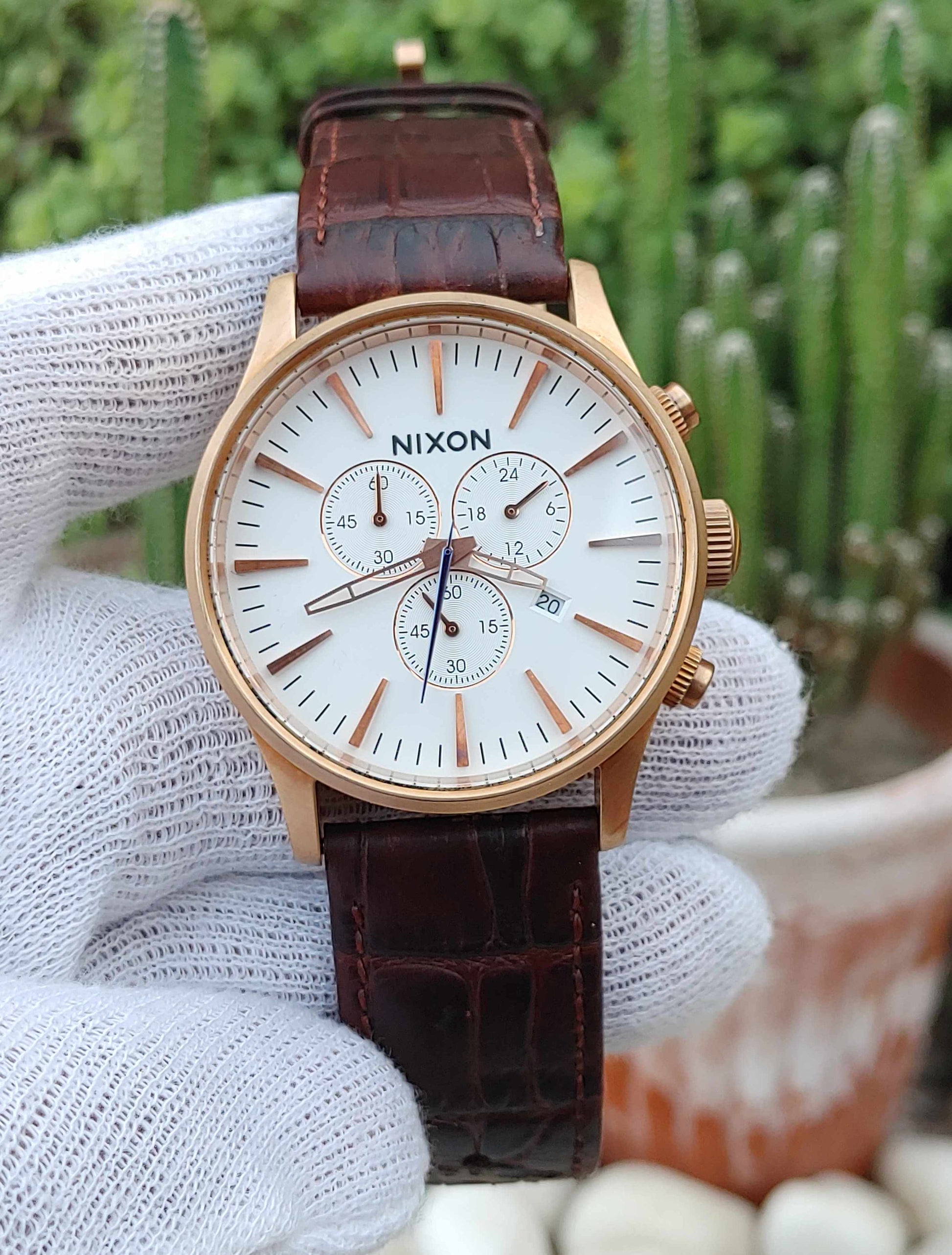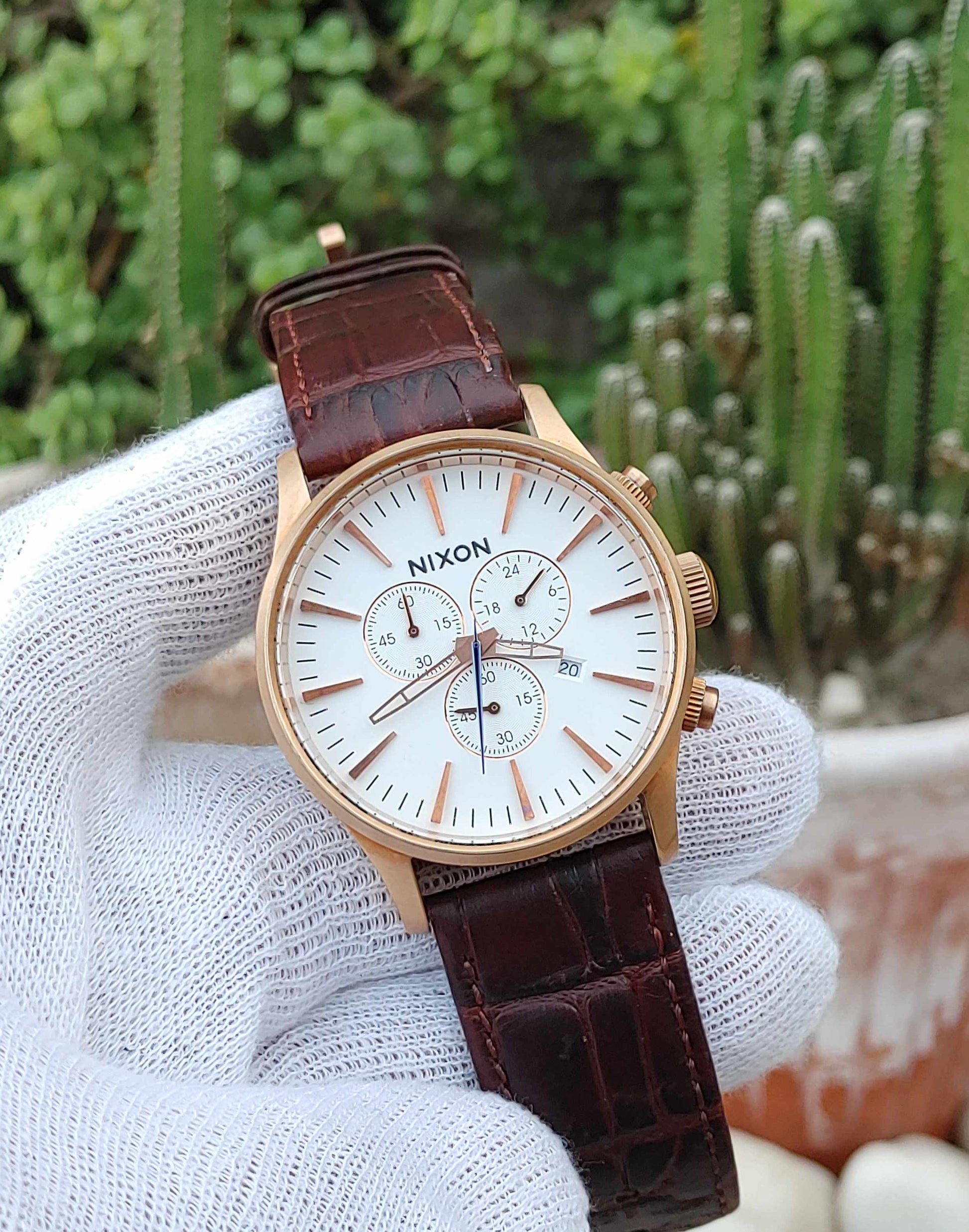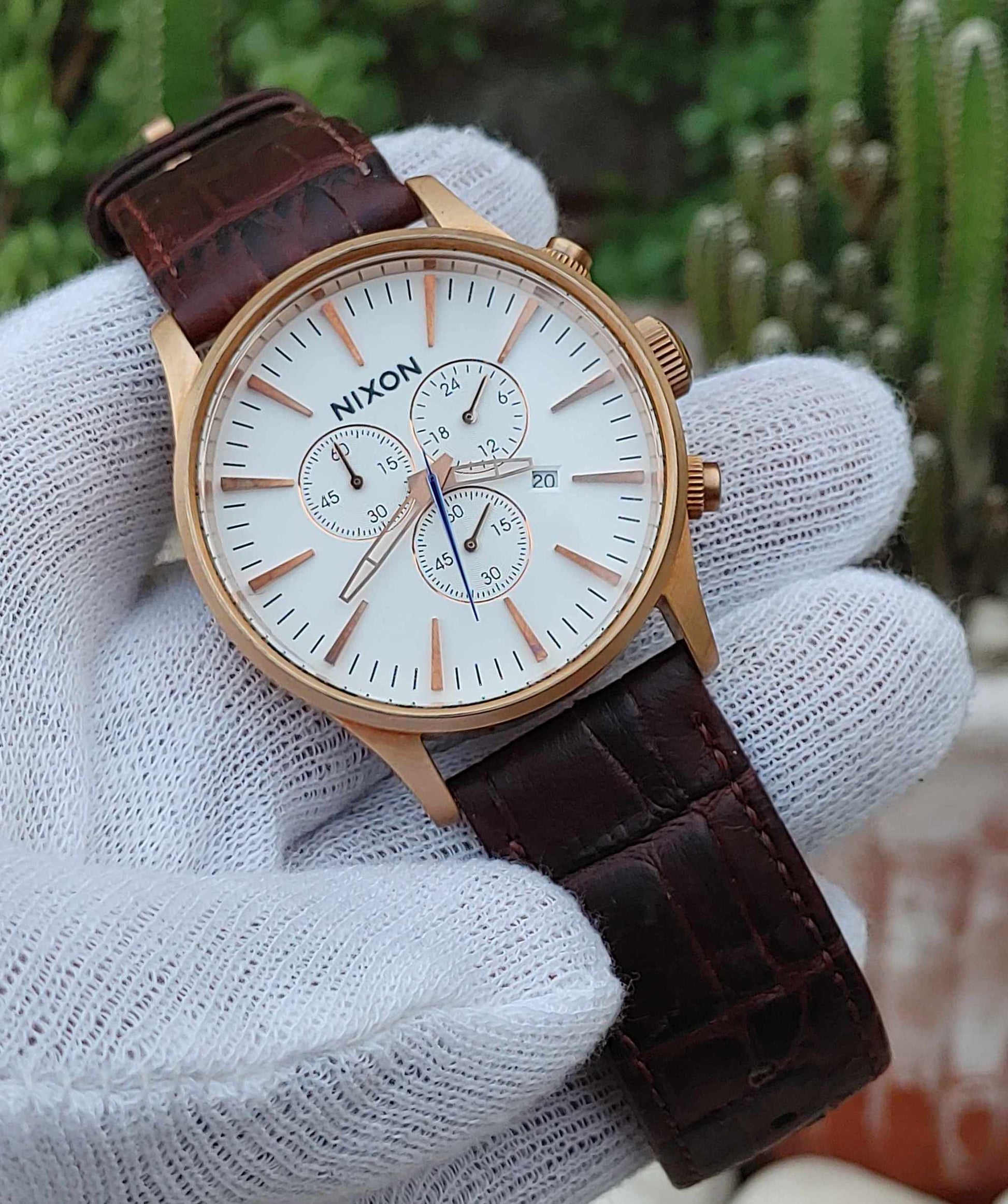 Nixon The Sentry Chrono Leather Strap Wrist Watch For Men Swiss Quartz 42mm Dial 100% Authentic Pre Loved Watch wity Zwc Box.