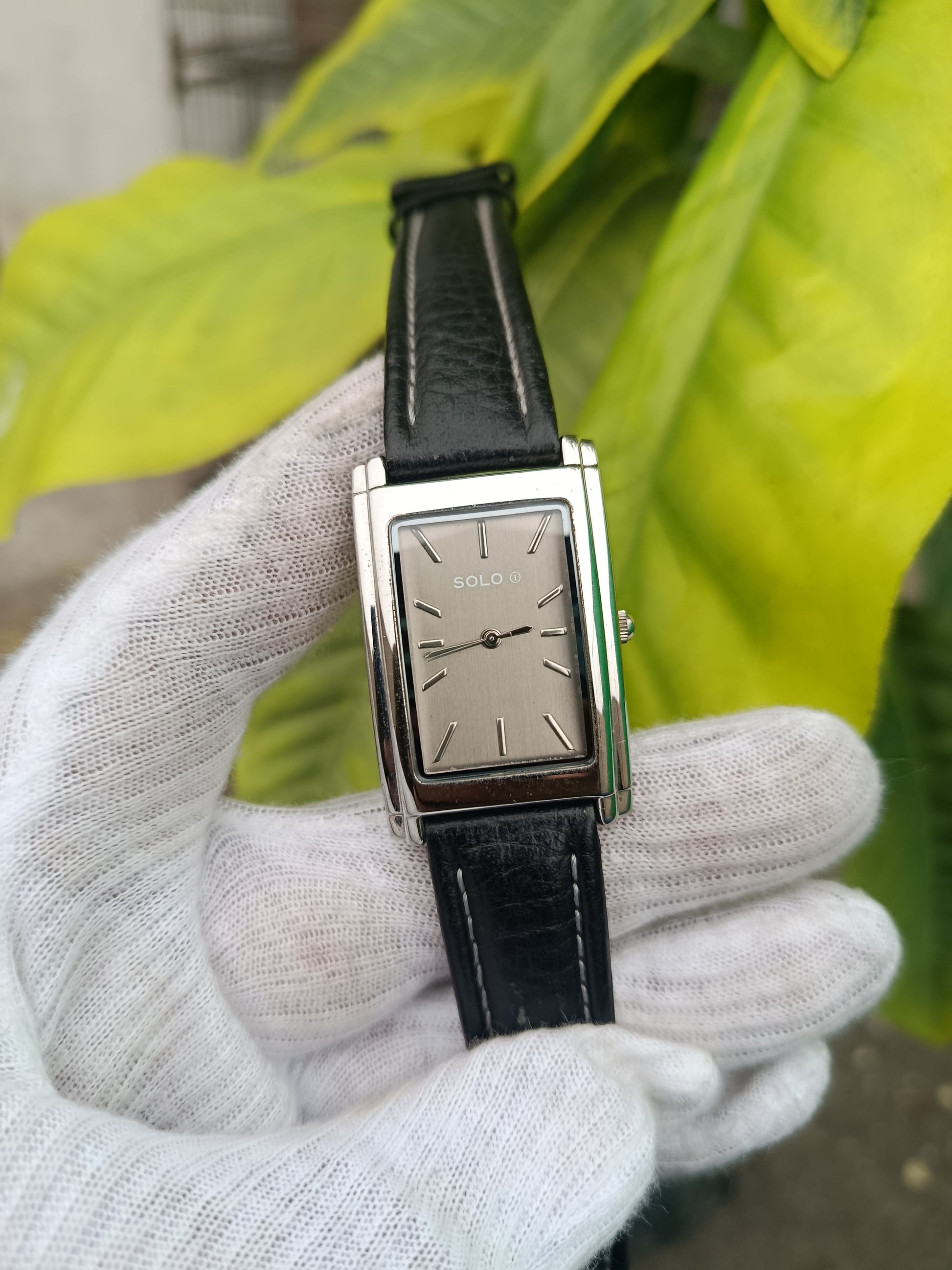 This SOLO unisex tank-style watch features a classic rectangular steel case paired with a black faux leather strap, offering a clean and elegant look inspired by timeless design. Suitable for both men and women, it’s ideal for everyday wear and smart occasions.