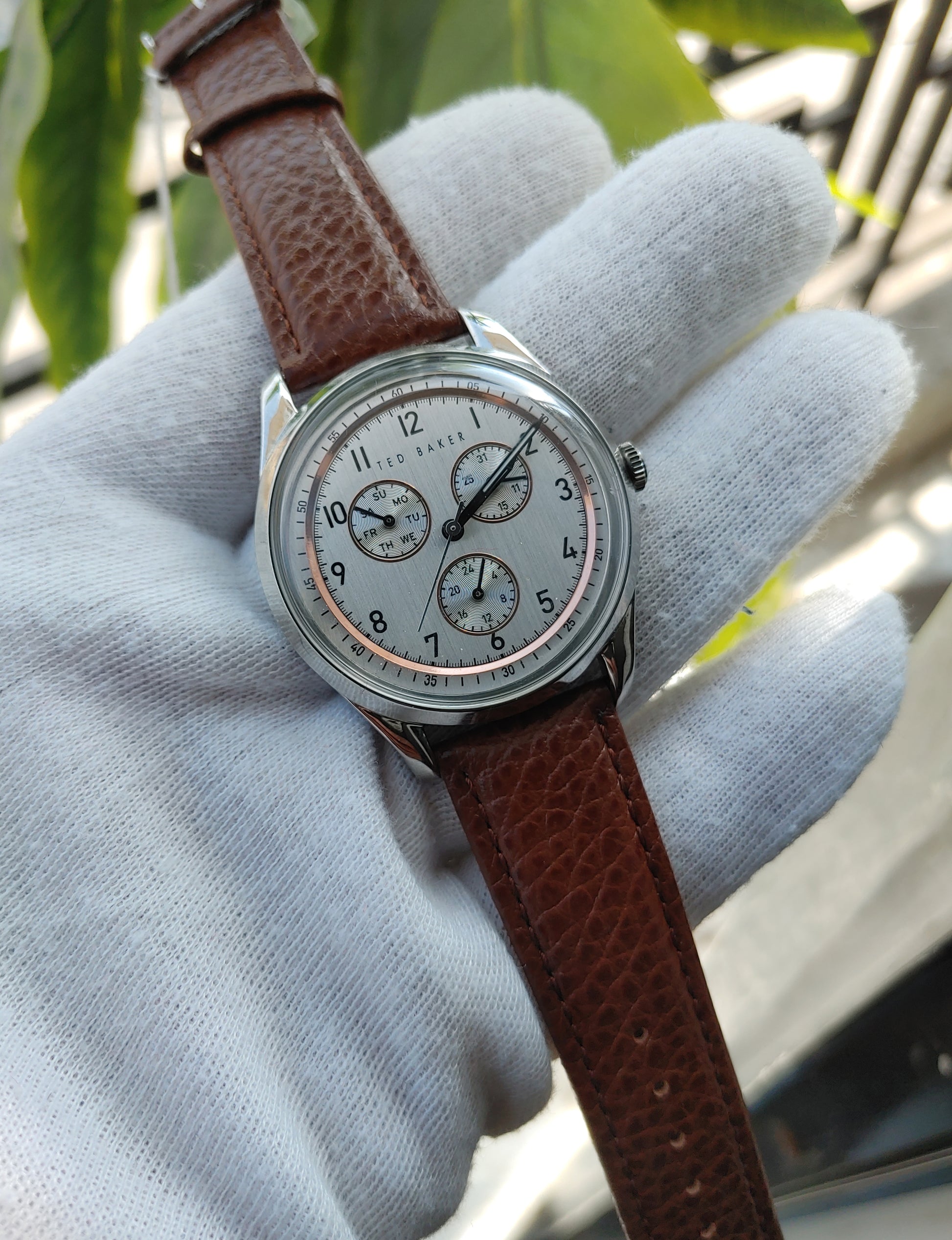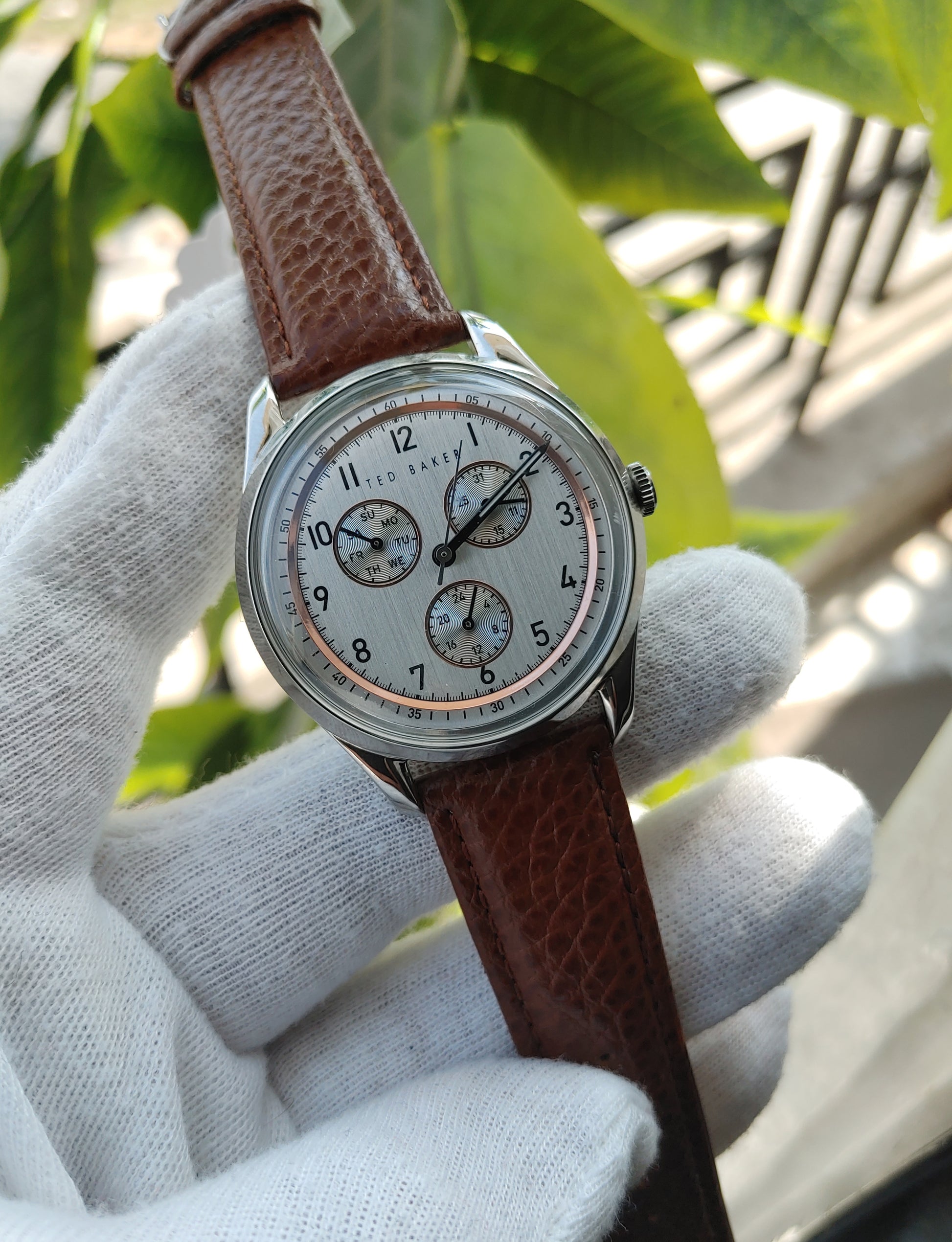 Ted Baker Date Graph Brown Leather Strap Watch For Men